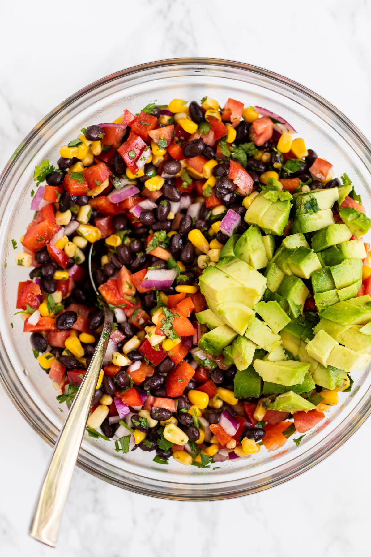Give the salad a good mix to combine, then add the diced avocado right before you serve. Gently mix it through.